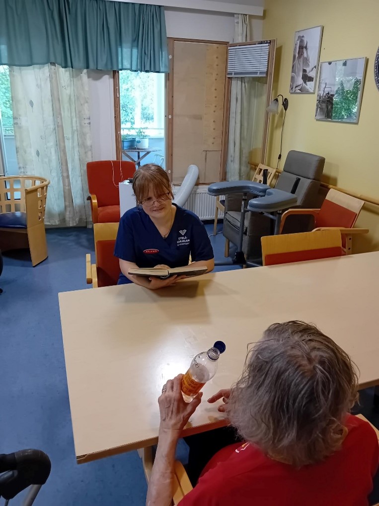Iris Pihlajamäki opiskelee Lyseon lukiossa musiikki- ja teatterilinjalla, mutta kesätöihin hän eksyi hieman erilaiseen työympäristöön Luumäen Vallikodille tutustumaan sote-alaan. Työpäiviin kuului ulkoilua, keskusteluja ja yhteisiä pelihetkiä asiakkaiden kanssa.