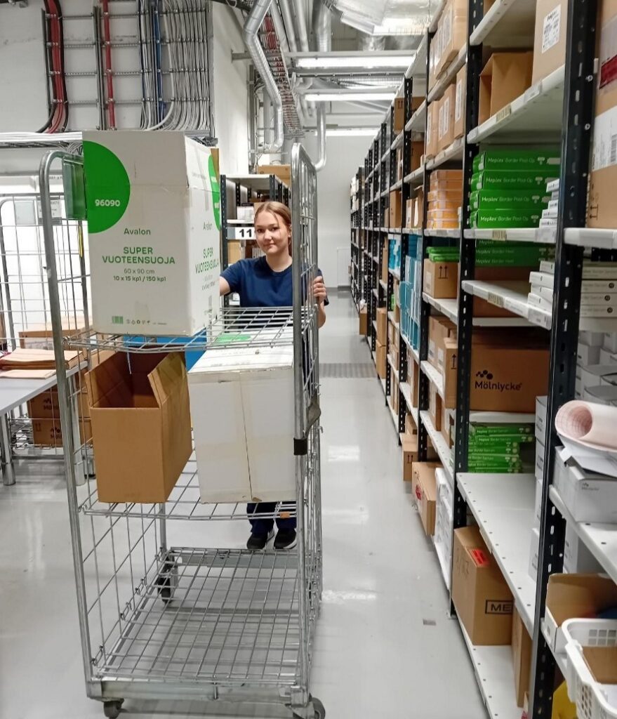 Venla Yrjönen vietti neljän viikon kesätyöjaksonsa Etelä-Karjalan keskussairaalalla logistiikassa varastopuolen työtehtävissä.