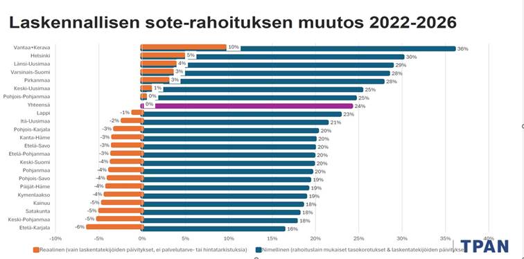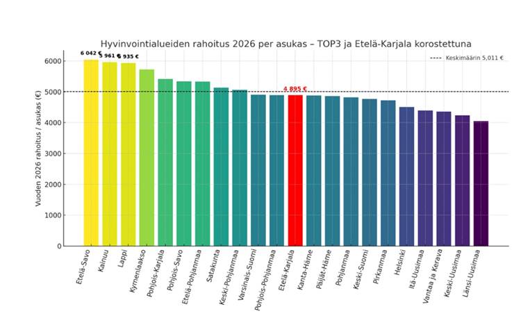 Kuten taulukosta näkyy, Etelä-Karjala tulee olemaan suhteellisesti suurin menettäjä. Kuvassa on kuvattu pelkästään laskennallisen sote-rahoituksen muutos, eli kuvio ei sisällä siirtymätasausten vaikutusta.